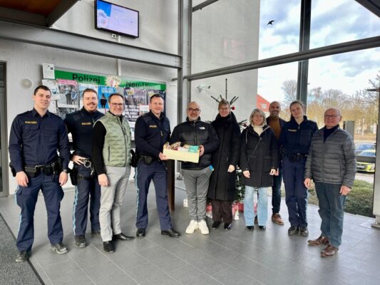 Stellvertretend für alle Blaulichtorganisationen in unserem Stadtgebiet überreichte der Vorsitzende des Ortsverbands, Serkan Yildirim und dessen Stellvertreter Juliane Lidl und Hans-Georg Maier, den diensthabenden Schichten der Polizeiinspektion Neu-Ulm, des Rettungsdienstes sowie der Feuerwehr einen Präsentkorb als Zeichen der Anerkennung ihrer Arbeit.