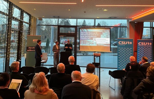 In der anschließenden Diskussionsrunde konnten Johannes Stingl, CSU-Fraktionsvorsitzender im Neu-Ulmer Stadtrat und Dr. Thomas Kienle, Fraktionsvorsitzender der CDU-/Ufa in Ulm die Besucherfragen zum Thema gekonnt mit einbinden. Fazit: Fake News gehen uns alle an – erkennen und etwas dagegen machen ist nötig.